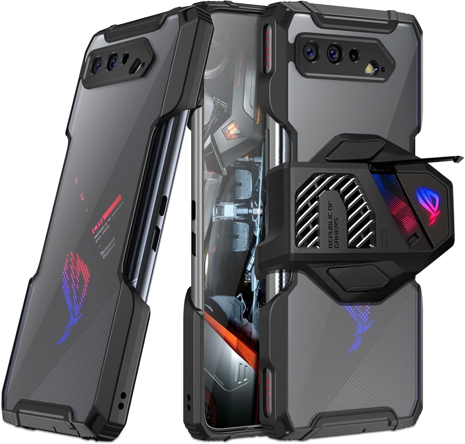 Amazon Com Fanbiya Armor Case For Asus Rog Phone 5 5s 5s Pro 5 Pro 5 Ultimate Compatible With Aerocooler And Air Trigger Soft Tpu Clear Pc Back Rugged Protective Shockproof Cover Case Only Cell