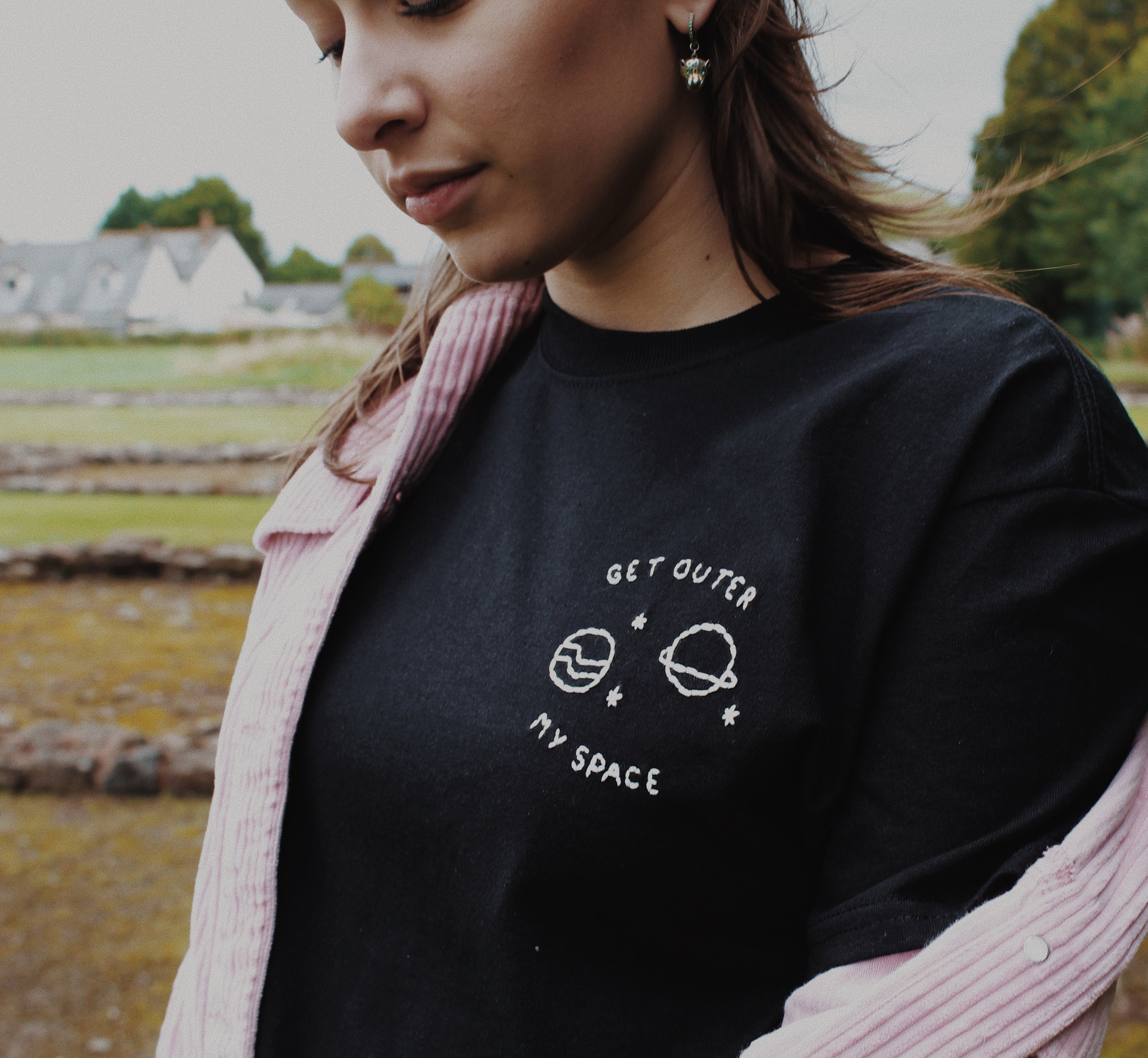 Hand Embroidered Black Get Outer My Space T Shirt Etsy